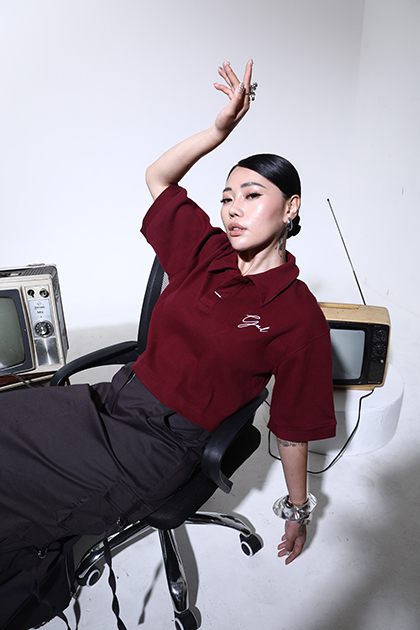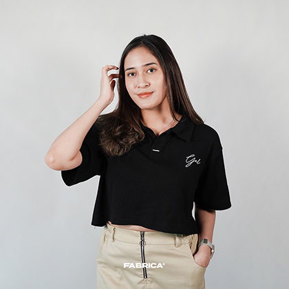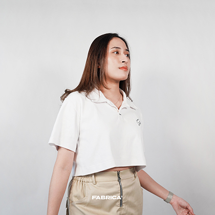 Polo Crop menggunakan bahan Rib Knit yang di design crop yang berkerah untuk menambah penampilan menjadi lebih standout