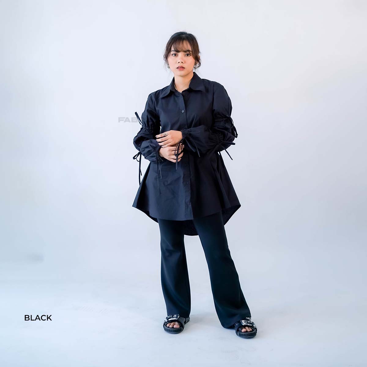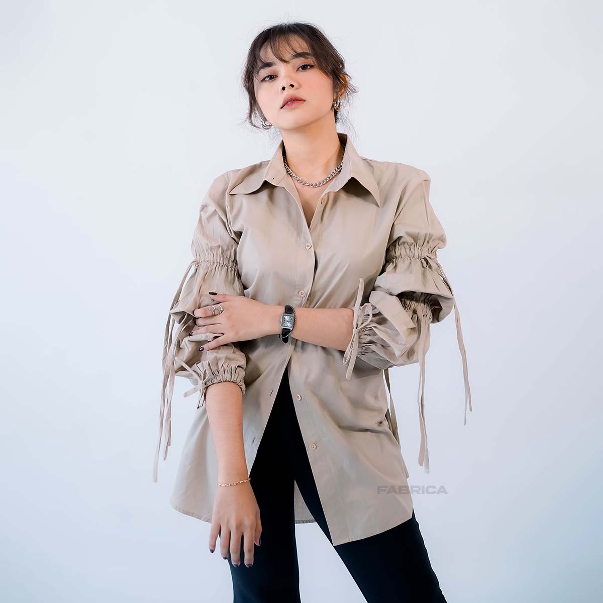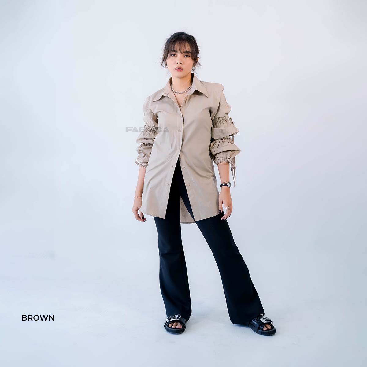 Detail dibagian lengan terdapat tali serut, available in two colors black & brown
